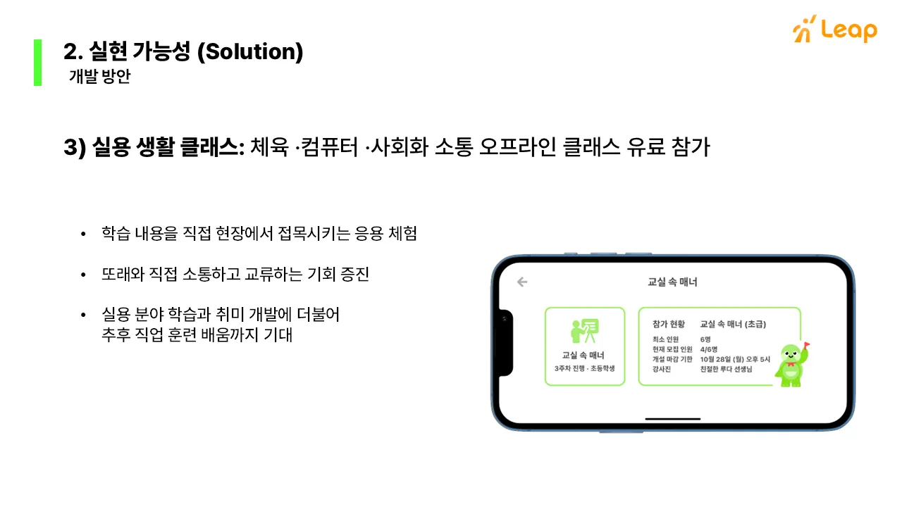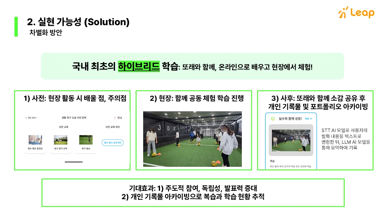 Leap 팀은 교육과 사회 부문에 집중하여 사회적 가치를 발굴하고 효율적으로 교육 및 학습에 도움을 줄 수 있는 방법을 모색하고 있습니다.