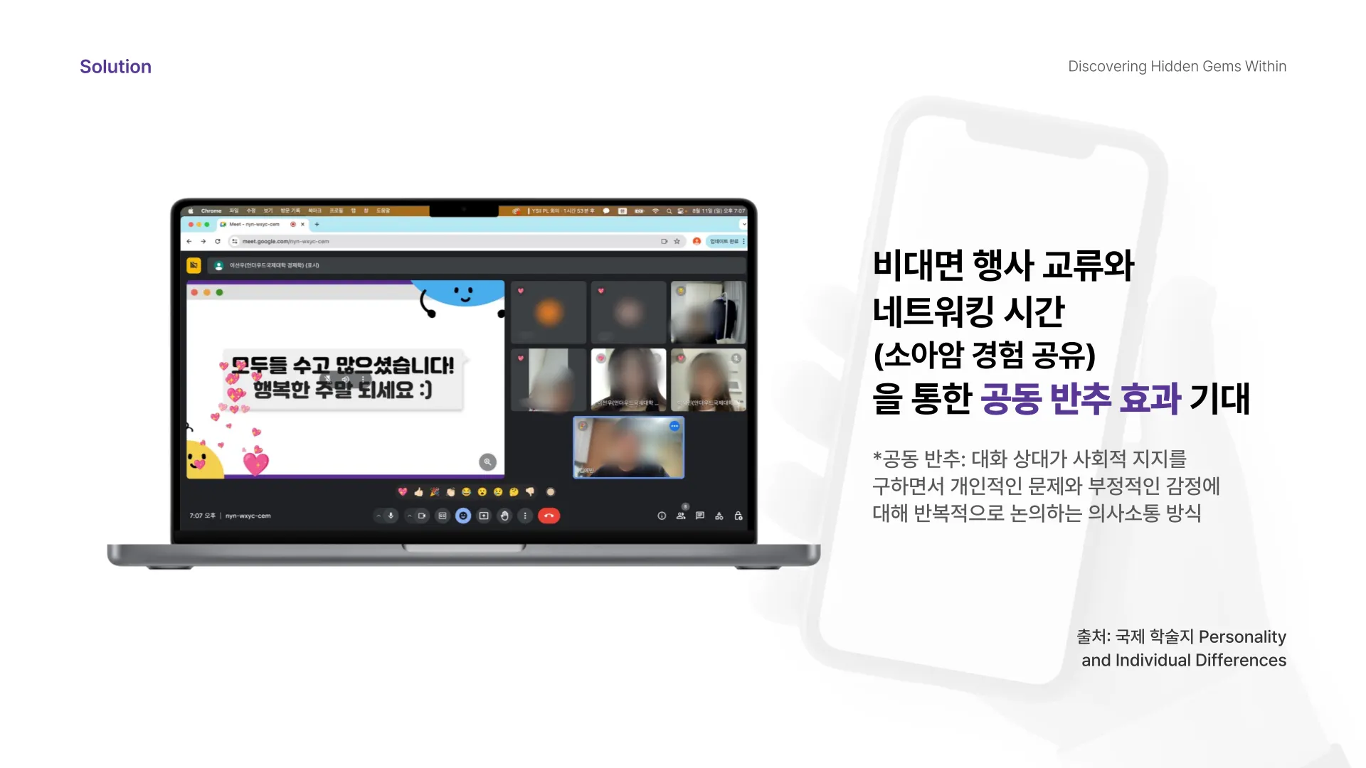 저희의 솔루션이 원적학교 또래관계 개선에 기여할 수 없는 이상, 지속적이지 못하고 실질적인 문제는 해결하지 못한다고 판단했습니다.