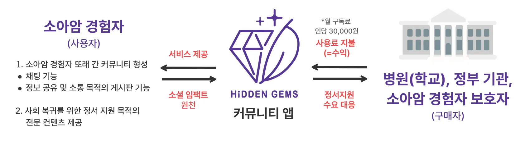 ‘임팩트 비즈니스’로 기존 아이템을 수익화하는 데 어려움을 겪었습니다. 구매자로 가정하고 리서치를 진행하였던 병원학교, 소아암 경험자 보호자, 비영리단체 등과 미팅을 여러차례 진행했습니다. 이들은 공통적으로 저희 솔루션을 높게 평가해 주셨지만 구매 의사까지는 이어지지않았고, 한국백혈병소아암협회 등 타단체에서 다양한 지원이 무료로 이루어지고 있는 상태이기에, 커뮤니티를 현실적으로 수익화하는 것은 불가능하다고 판단했습니다.