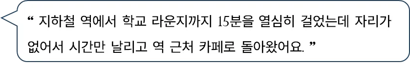 모든 대학생이 공부할 자리를 찾아 헤매지 않는 그날까지,