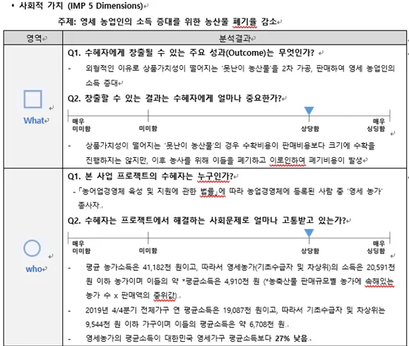 IMP 5 Dimension에 따른 사회적(정량적) 가치 계산